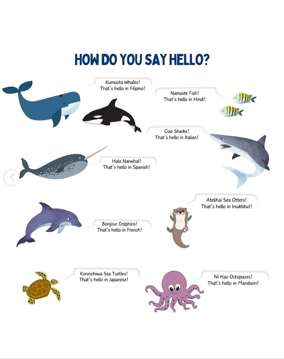 Hello Ocean is not only educational, introducing kids to more than 10 different animals but also full of positivity. Kids learn a fun fact about each and how to say hello in different languages, from Aloha to the Dolphin to Pryvit to the Pufferfish.