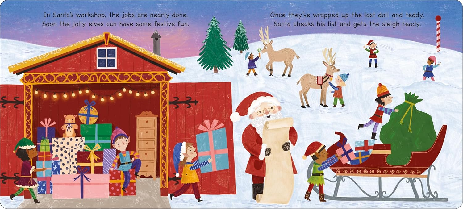 Watch as Santa visits lots of different homes, then turn the shaped pages to see the presents he leaves behind. Perfect for settling your little one into bed and ending with your own, quiet, "Night, night."