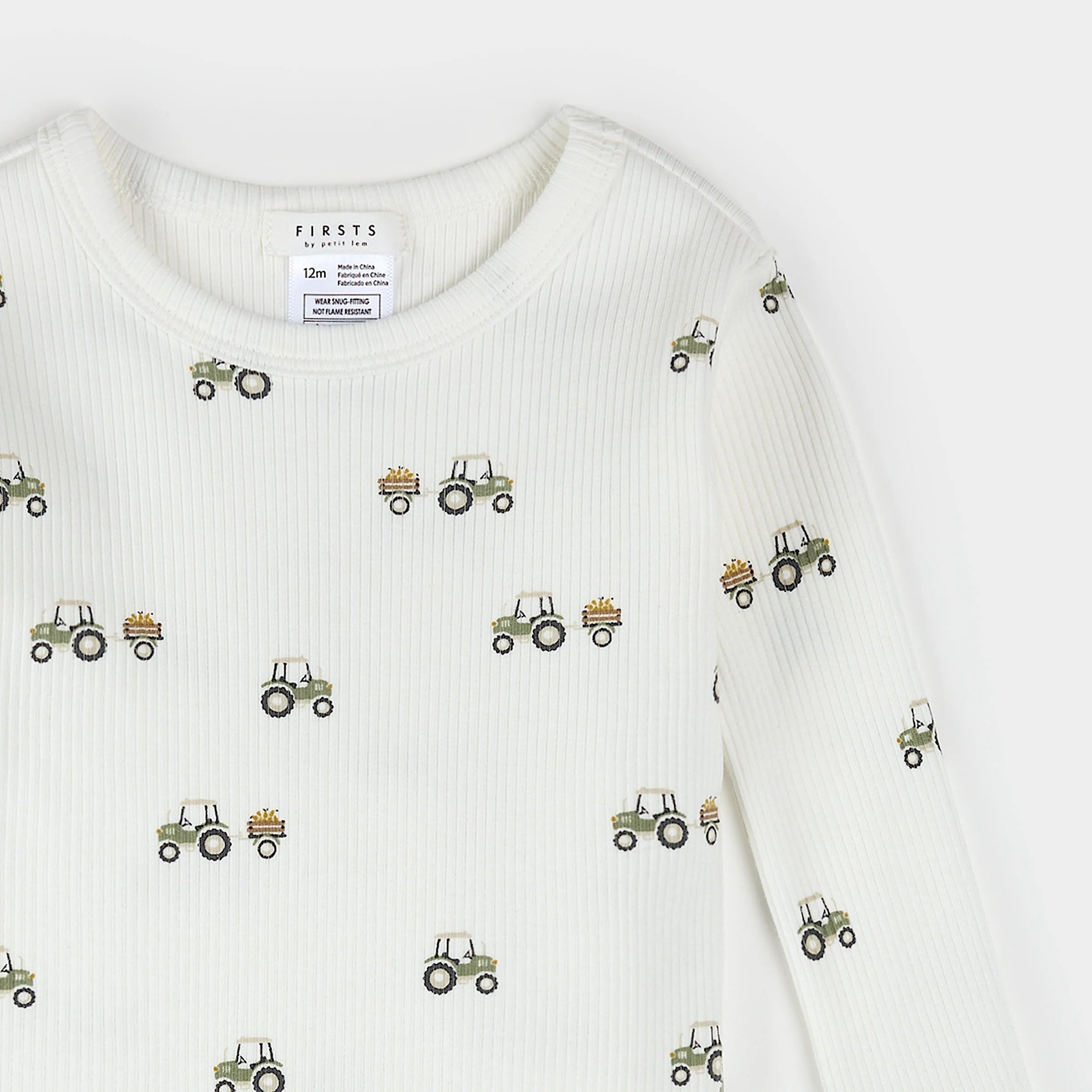 Petit Lem | Pear Picking Truck Print on Off-White | 2 Piece Pajama Set
