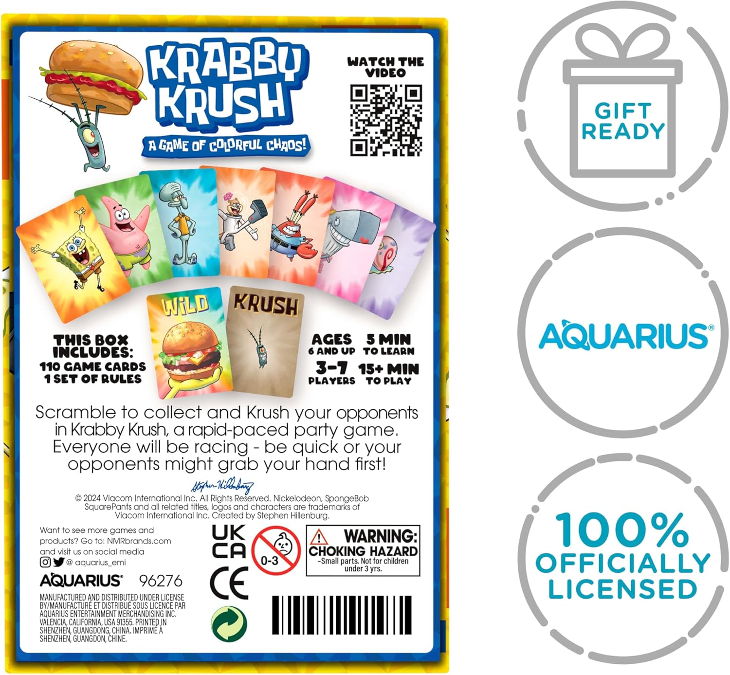 - 100% OFFICIALLY LICENSED SPONGEBOB SQUAREPANTS MERCHANDISE: This SpongeBob Krabby Krush card game is designed by AQUARIUS and officially authorized for fun. It’s a perfect piece of SpongeBob memorabilia to add to your collection