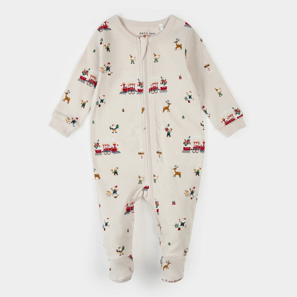 Petit Lem | Christmas Santa's Workshop Print on Creme Sleeper