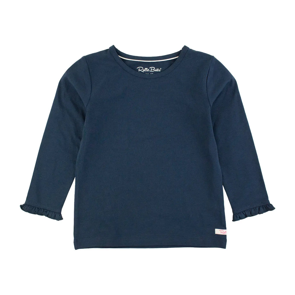 Ruffle Butts | Dark Navy Knit Long Sleeve Ruffle Tee