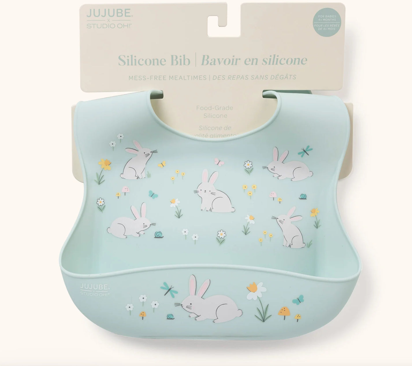 Keep your baby’s clothes clean and dry during feeding time with a food-grade Silicone Bib from JuJuBe × Studio Oh! Made for babies 4 months and older, these bibs feature a deep front pocket to catch messes, and because they are dishwasher-safe, cleanup is fast and easy! Designed to fit comfortably and stay put, each bib features four ouch-free fasteners at the back of the neck strap, so it will stay comfortable as your baby grows. The Silicone Bib is BPA-free, PVC-free, phthalate-free, and lead-free, giving parents peace of mind while keeping mealtimes mess free! 9"W × 11"H (22.8 cm × 27.9 cm)